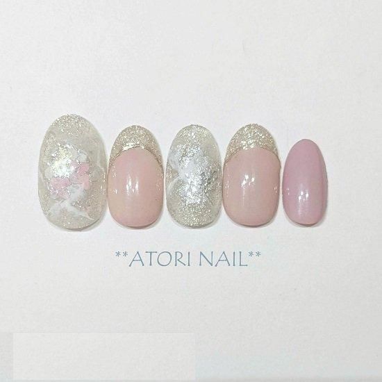 ラメのフレンチネイルとニュアンスネイルの組み合わせ。