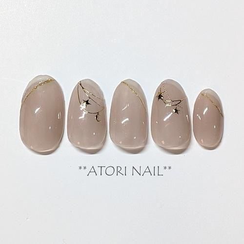 落ち着いたベージュにオフホワイトで細フレンチを斜めに施しました。